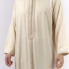 Un zip invisible au niveau de la poitrine permet d’enfiler le caftan facilement, tout en conservant une finition nette et épurée.