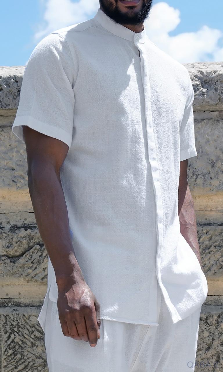 Enfin un ensemble qui allie confort et style pour les saisons chaudes. L’ENSEMBLE EFFET LIN de Qabail est le choix idéal pour ceux qui recherchent une tenue légère, habillée et respirante.