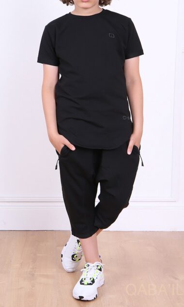 Cet ensemble offre à votre enfant une liberté de mouvement, grâce à son pantacourt à entrejambe bas et ses poches zippées au niveau des cuisses, ajoutant une touche pratique et fonctionnelle.