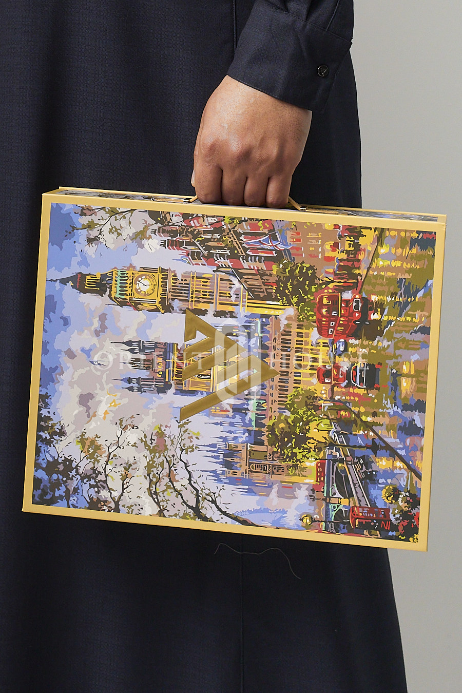 Ce Qamis est livré dans une boîte coffre au design inspiré des grandes maisons de luxe, renforçant son positionnement exclusif.
