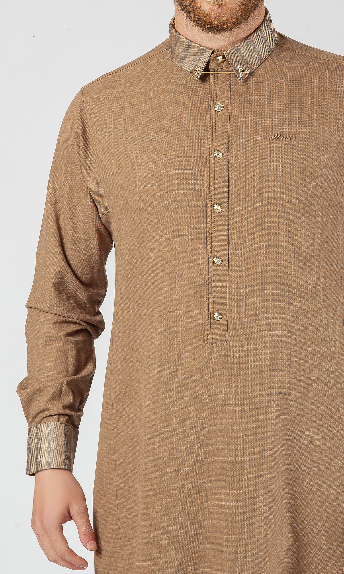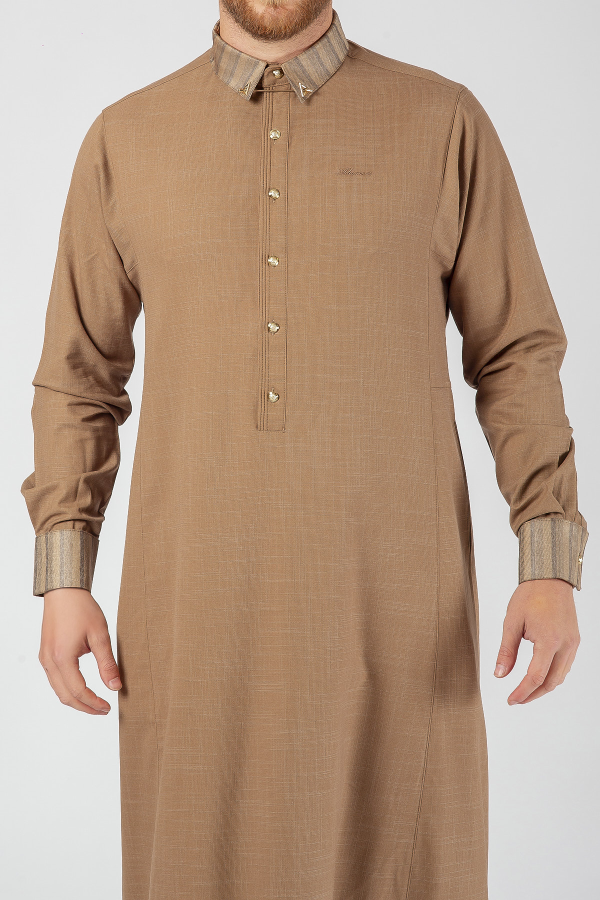 Un qamis élégant et habillé, c’est là toute la beauté de ce modèle luxueux qui allie valeurs et style pour un résultat unique.