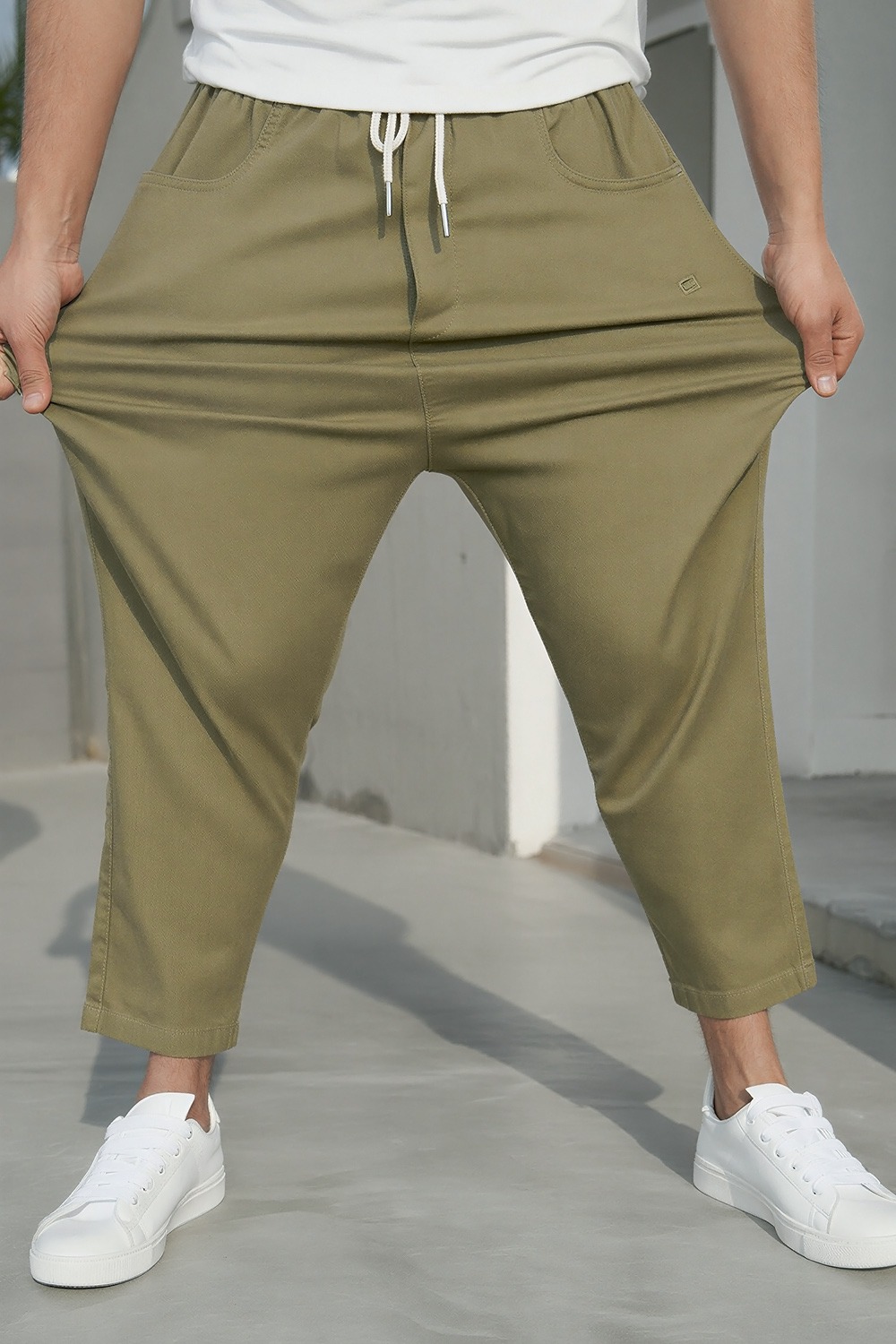 Sarouel Stretch Drop Kaki – QABAIL : l’esprit urbain dans une teinte indémodable